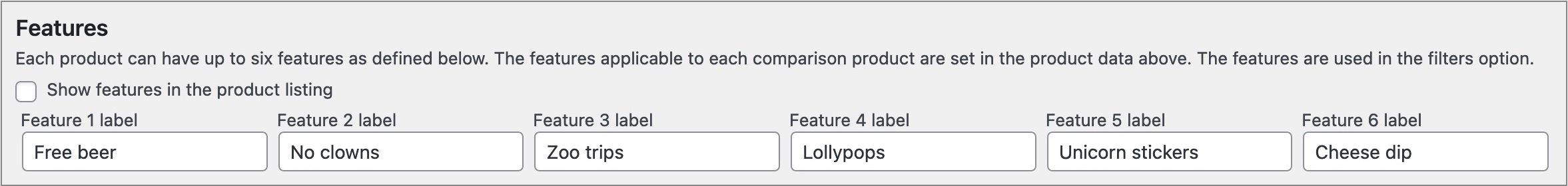If enabled the filter buttons display below the sliders using the labels from the Features option. It’s set up so you can have multiple filters. Which means if someone selects all the filters there might be no matches.